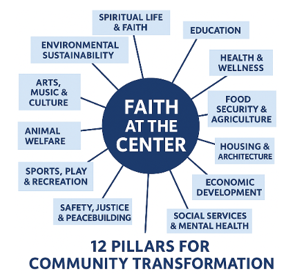 Our framework for this transformation is defined through the 12 Pillars of Community Transformation — a holistic model through which faith, compassion, and creativity can reshape the way we live, learn, work, and care for one another.